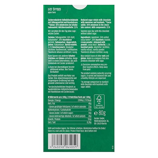 რძიანი შოკოლადი თხილით შაქრის შემცვლელი დამატკბობლით, ქსილიტოლით.