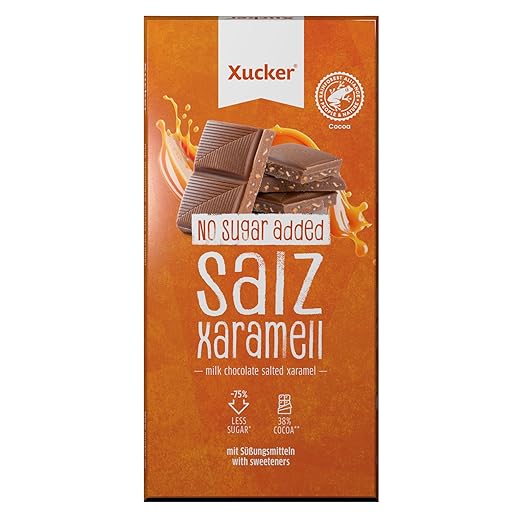 რძიანი შოკოლადი მარილიანი კარამელით, შაქრის შემცვლელი დამატკბობლით, ქსილიტოლით.