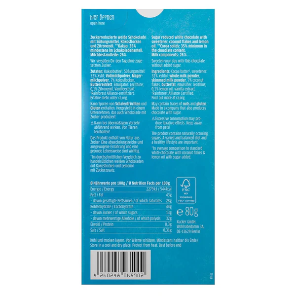 თეთრი შოკოლადი ქოქოსით, შაქრის შემცვლელით (ქსილიტოლით)